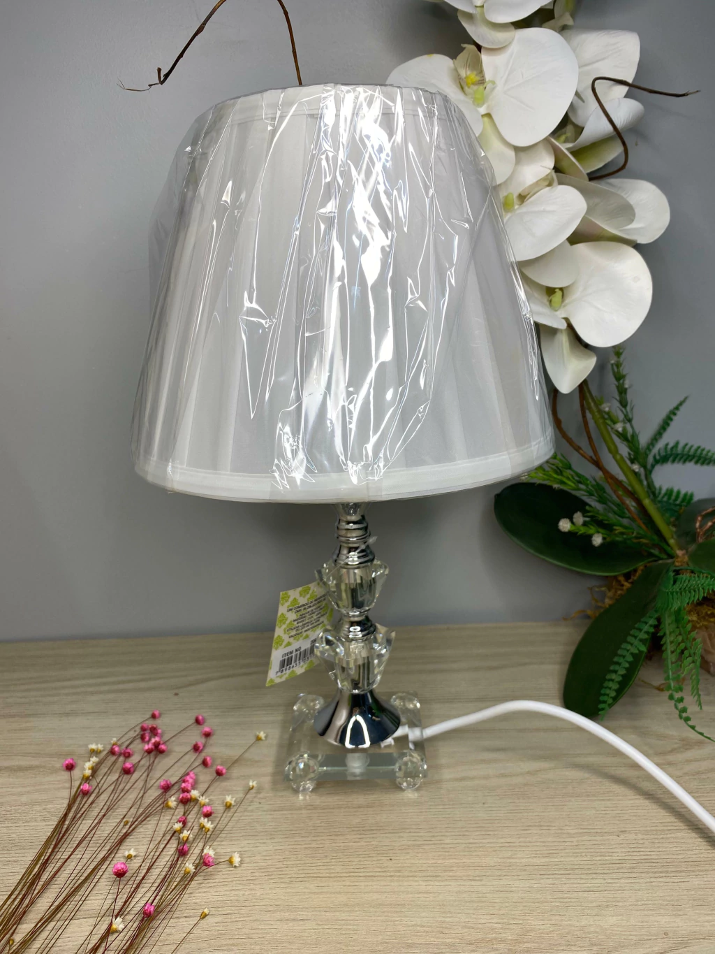 Este abajur combina elegância e funcionalidade em um design clássico. Sua base em vidro transparente traz leveza e sofisticação, enquanto a cúpula em tecido plissado proporciona uma iluminação suave e aconchegante.