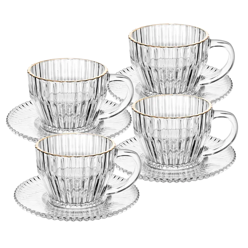 Desfrute de momentos de café com requinte e elegância com o Conjunto de 4 Xícaras de Chá de Cristal com Fio de Ouro Imperatriz da Wolff.