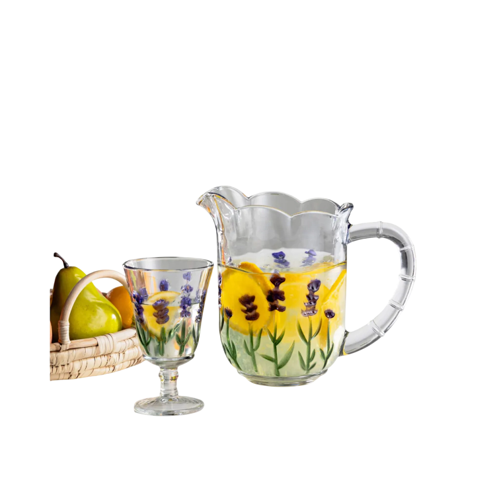 Este conjunto não é apenas um item para servir bebidas, é uma verdadeira obra de arte que transforma momentos simples em ocasiões memoráveis. Seja para um almoço, jantar ou um encontro especial, o charme da lavanda e a exclusividade da pintura manual fazem toda a diferença.