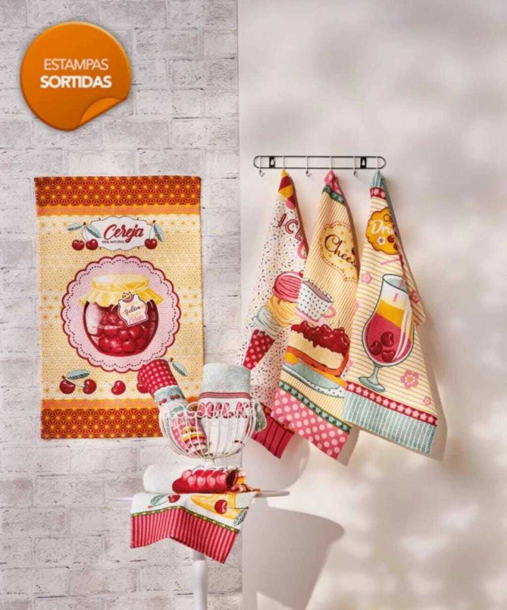 Os panos de copa da coleção Doçura trazem encanto e beleza em suas estampas. Ilustrando diversas cerejas, padronagens coloridas e muitos doces. Possui tecido felpudo que possui ótima absorção, se torna mais macio e absorvente a cada lavagem, não perdendo a intensidade das cores e não desfiando. Com sete opções de estampa, eles trazem um toque especial na decoração, além de muita praticidade para tornar os dias mais leves.